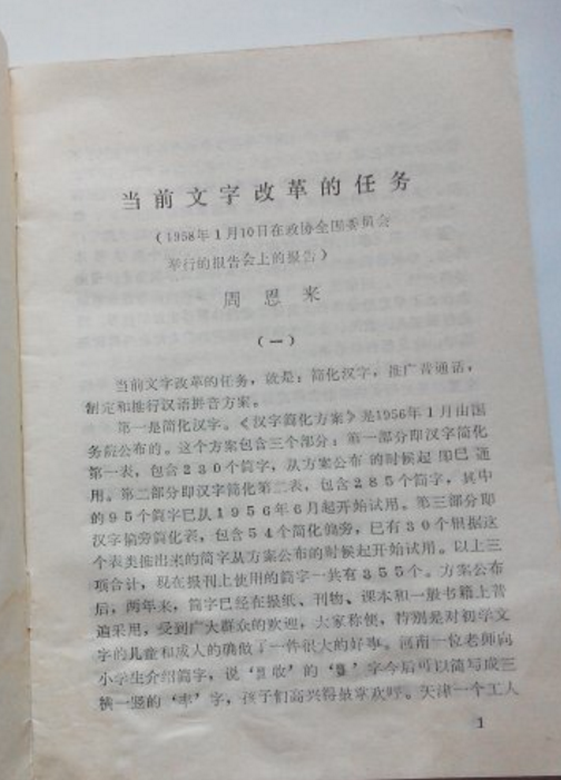 周恩来《当前文字改革的任务》单行本。资料图
