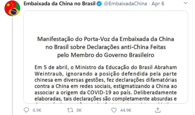 巴西各界强烈谴责巴教育部长“污名化”中国言论,九成巴网友支持中国