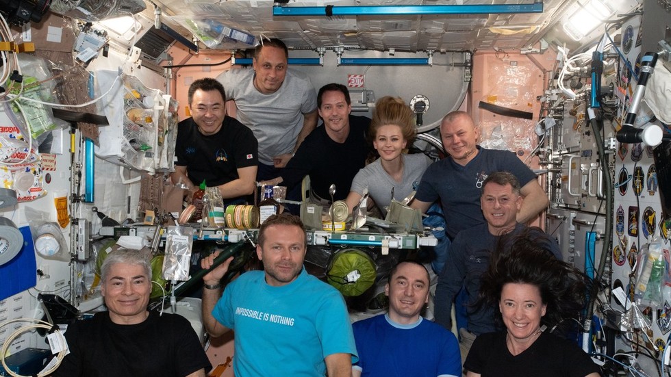 ▲ 电影工作者与国际空间站工作人员的合影。| 俄罗斯宇航局