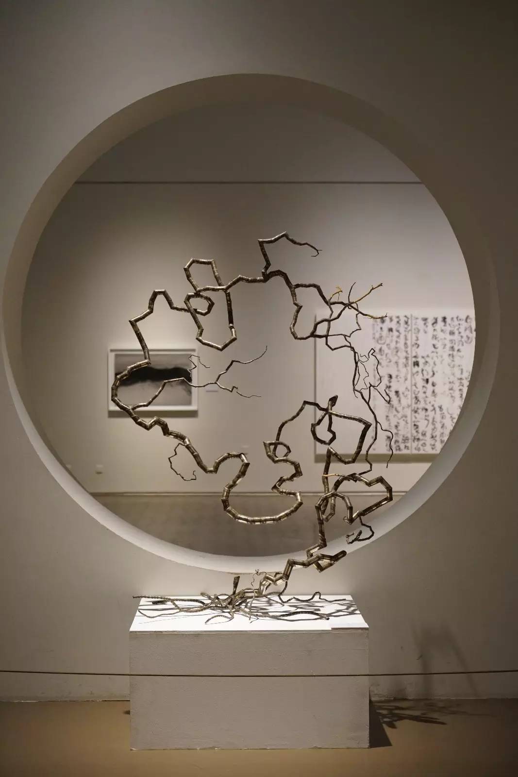 黄珺的作品通过心电图,记录书写创作过程中的思绪;汪一舟用宣纸做成的倒置的山让地球引力消逝;门雅旭作品采用不锈钢的材质,给中国传统山水一种新的视觉可能;杨宁的中国画古代人物,仿佛置身于现代生活之中;董文胜用光勾勒的水波给湖、河、江、海一种妙境;邵文欢通过影像作品将熟悉的江南园林景象,按照自我的方式重构神秘园;吕旗彰的装置作品将江南山水的意境演绎的更加空灵……