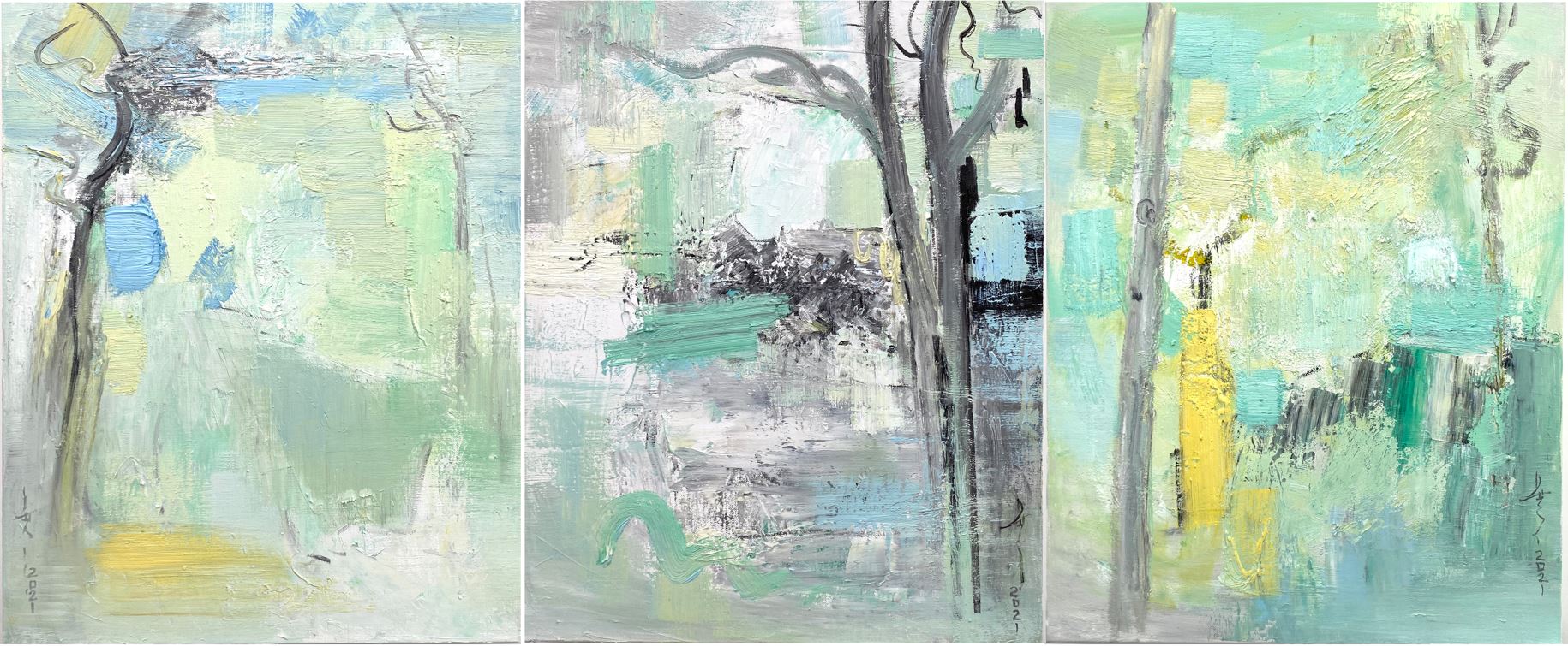 据上海油画雕塑院美术馆负责人江梅介绍,以“平行线”作为展览主题,是因为此次个展主要突出的内容是近期创作的《园林系列》和《MSC系列》。“平行线”喻指这两个在同一时间段里并行开展的绘画线索。如果说《园林系列》体现了历史与当下的一种情感交汇,是画家内在文人情结与意趣的感性表现。那么“MSC”系列更像是一种面向现时与未来的又一崭新开启——无论是画面的形式语言还是精神指向,在这个系列中生命与艺术的关系显现出一种更为自在和谐的状态。