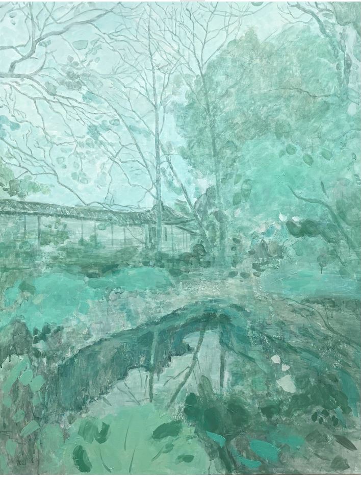“漫步在园林安静的角落里我会发现,阳光漫射时,偶然间可能一棵植物、一粒小石头也会激发很多的想象,我曾经在意大利做交流活动时听到意大利的一位历史学家说: “罗马的石头会说话”,这使我联想到中国同样是具有古老历史的地方,灵性无不渗透在万物之中,园林的石头,它是有生命力的。”在油画创作实践中,刘曼文体悟到:艺术家生活经验、技术储备以及对人生的认知态度构成创作主体。