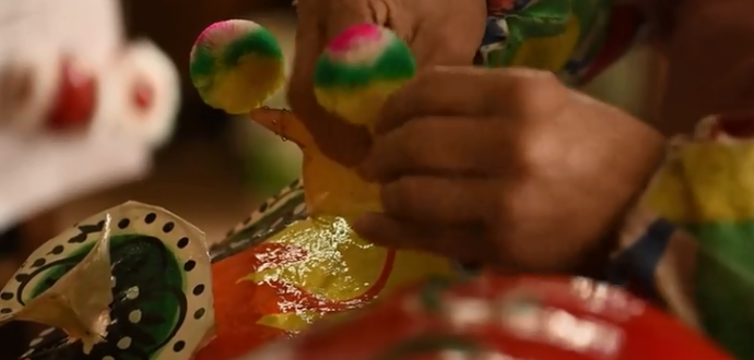黎明破晓,走进醒狮狮头制作厂,工匠们已经开始一天的忙碌。扎作、扑布、绘画、装狮……手指与竹篾的毫厘之间,满是岁月痕迹。