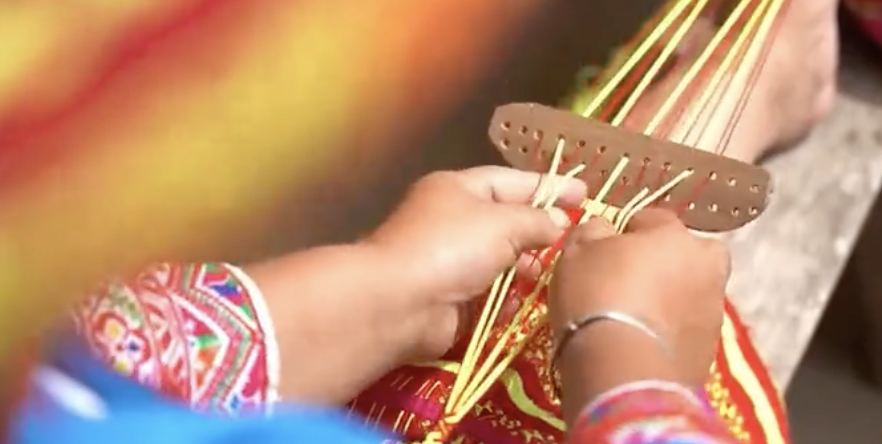 花瑶,因挑花工艺得名。所谓挑花,也称“挑织”,是抽纱工种的一种,也指刺绣的一种针法,在棉布或麻布的经纬线上用彩色线挑出许多很小的十字,拼接成各种图案。