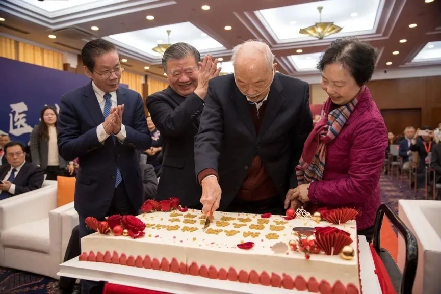 上海交通大学医学院附属瑞金医院党委书记瞿介明,中国工程院院士、附属瑞金医院院长宁光代表上海交通大学医学院附属瑞金医院全体师生医务员工向王振义院士送上代表全体瑞金人祝福的纪念礼物。