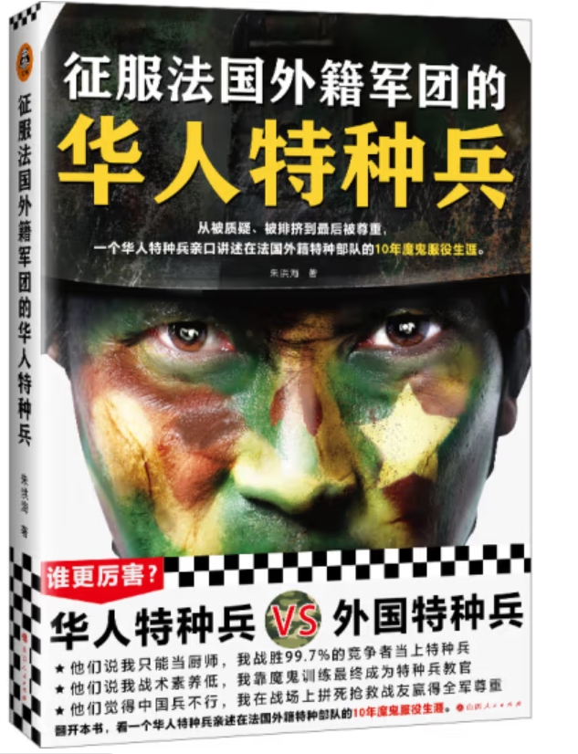 安徽青年吴鑫磊,是加入以魔鬼训练著称的法国外籍军团“伞降突击队”的首位华人特种兵,后曾担任过特种兵教官。在法军服役十年,吴鑫磊被派往中非、马里、也门等十多个战乱国家,经历大小野战、夜袭、巷战无数,多次与死神擦肩而过。在法军服役十年后,吴鑫磊选择回到中国,上过央视,还与口述史作家朱洪海合作出了这本书。书中披露的法国军事训练及海外战斗经历,堪比大片。