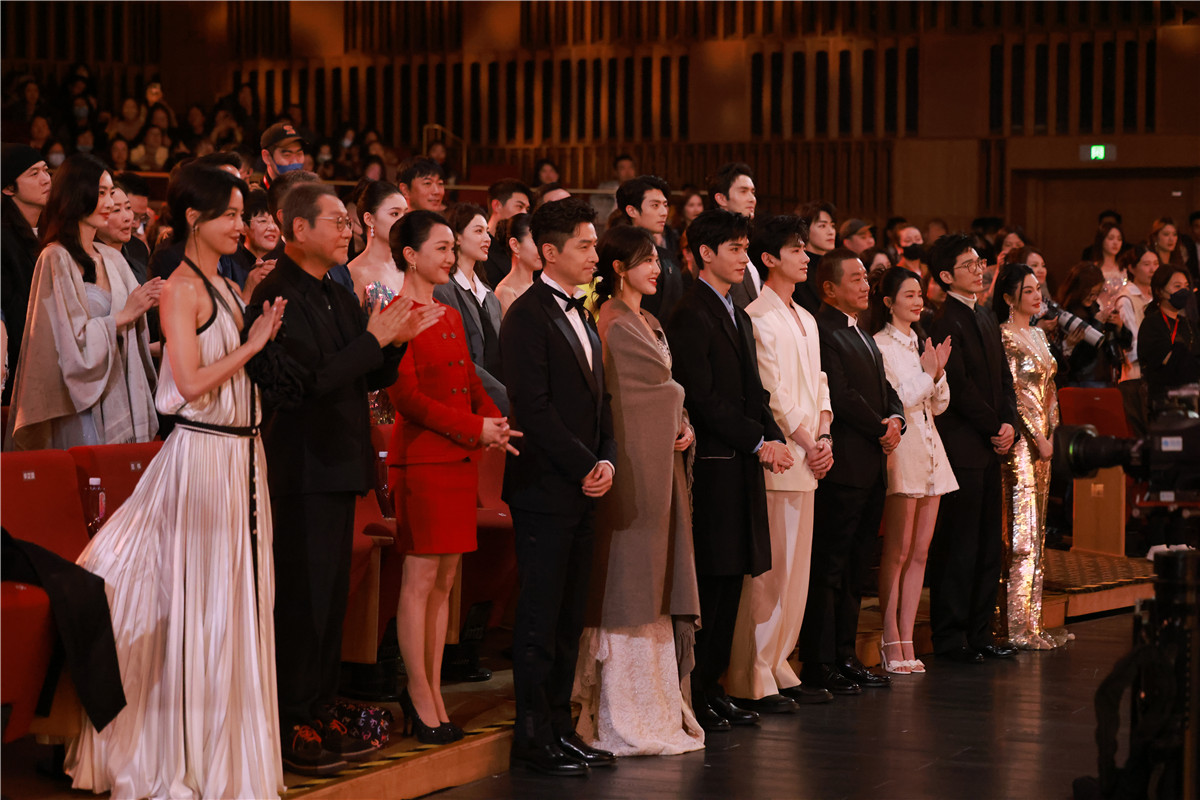 多年来,电视剧品质盛典被誉为中国电视剧的“风向标”。盛典现场,从奖项数量上看,《繁花》无疑是最大赢家。去年的电视剧品质盛典,90岁“爷叔”游本昌在盛典上被授予“品质剧匠”的荣誉,今年年初,游本昌主演的《繁花》沪语版在东方卫视播出后,让全国观众爱上了上海味道。今年盛典上,《繁花》荣膺“年度品质榜样剧作”,为未来的创作者树立了榜样。作为上海原创、上海制作、上海出品的代表性作品,王家卫十年磨一剑,终让《繁花》以电影质感绚烂的影像,展现了上世纪九十年代沪上儿女的奋斗故事与社会风貌,这是一次影视与文学作品的激烈碰撞,集海派风韵之大成,打造了中国电视剧全盛孤本。《繁花》开创了一部电视剧赋能一座城市、代言一座城市的先河。盛典现场,《繁花》的演员胡歌、唐嫣、辛芷蕾、陈龙、董勇、陈国庆、佟晨洁、范志毅……编剧秦雯、制作人彭绮华等前后登台,凭借《繁花》的绽放,摘取了“品质”之果。