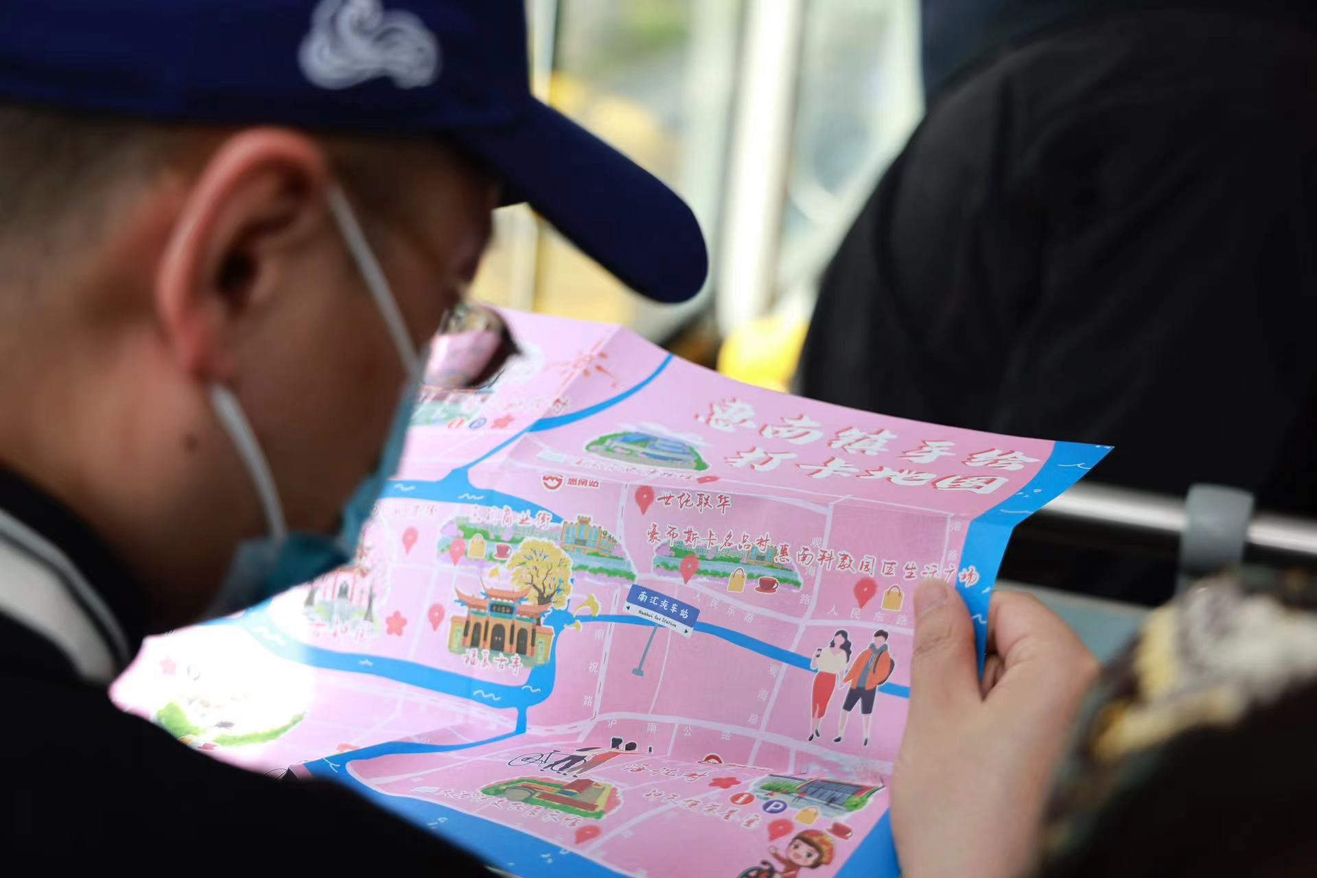 同时,定制公交线车厢内外都设计绘制了桃花图案,标注了桃花节时间、打卡点等信息,让人一眼就能感受到浓厚的节日氛围。车厢内还设置了普通话与浦东本地方言的双语报站,更方便了本地老年人知晓站名,让浓郁乡音成为一种传承本土文化的方式,并张贴了二维码供乘客扫码了解景区特点,呈现出多样化形式的全面公交服务。