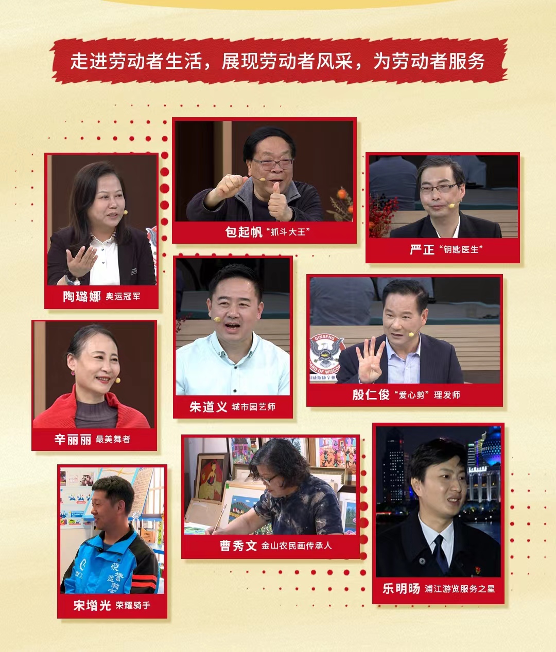 劳动创造幸福,平凡铸就非凡。第134个国际劳动节,上海广播电视台都市频道推出特别节目《平凡筑非凡——五一特别献礼》,邀请九位全国劳模、工匠分别讲述各自的工作、生活经历。节目还将通过体验式拍摄让观众沉浸式感受劳模、工匠们的工作日常,希望以此传递“劳动创造幸福”的核心价值观念;同时通过为劳模、工匠们订制美食、养生方案,拓展节目的社会公益价值。