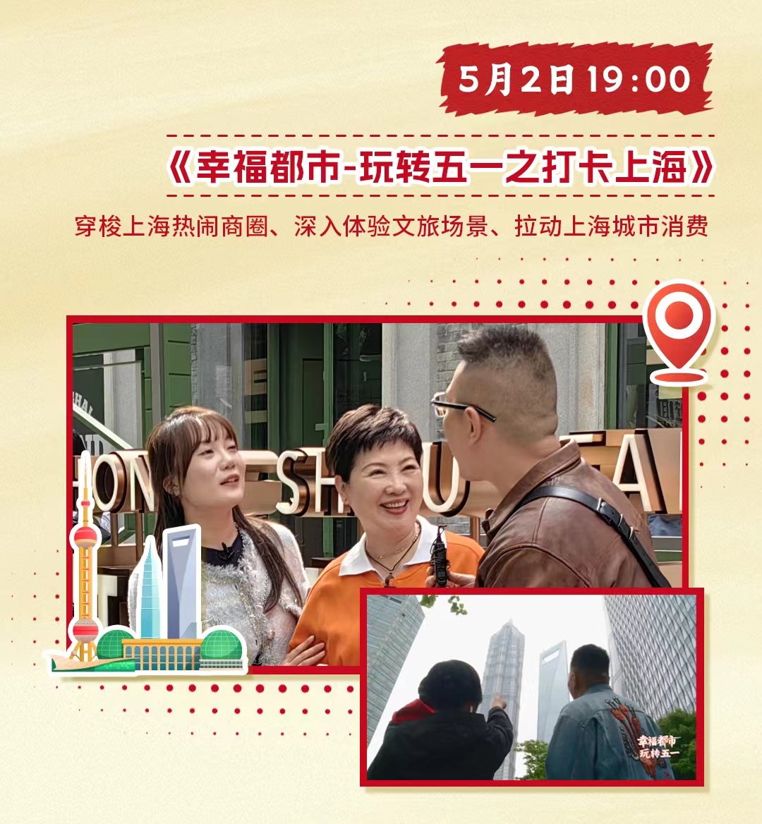 据了解,《平凡筑非凡——五一特别献礼》将于2024年5月1日18:00在上海都市频道播出。同时,为丰富申城市民五一假期的文化和消费需求,都市频道还将于5月2日至5月5日分别播出《幸福都市·玩转五一之打卡上海》《幸福都市·玩转五一之行走江南》《好吃南京路》等五一专题节目,在歌颂劳动者的同时,为上海的消费提振和经济发展助绵薄之力。