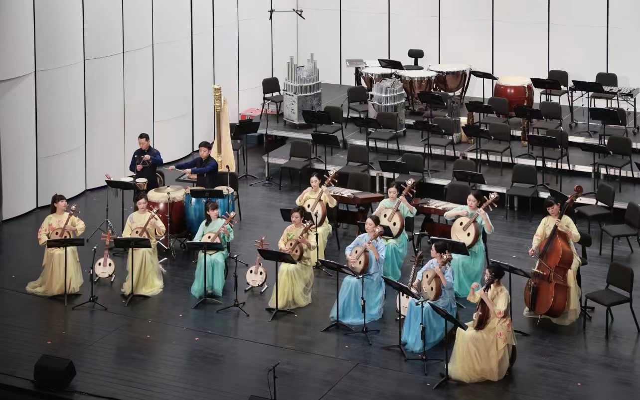乐团阮声部首席刘波带来《酒狂》,作品改编自相传由晋代“竹林七贤”之一的阮籍所创作的古琴曲。音乐旋律含蓄深刻、激越顿挫,展现文人隐士旷达不羁的精神世界。《出水莲》改编自传统客家筝曲,曲风古朴典雅,描绘莲花出淤泥而不染之风姿,托物言志,抒发高远情操。《三六》由乐团终身艺术顾问、著名作曲家顾冠仁根据江南丝竹名曲改编,格调清新雅致,旋律秀丽明快,音乐欢乐活泼,具有浓郁的江南风格。《打起手鼓唱赞歌》呈现浓郁的新疆风格,曲调活泼欢快、诚挚深情,展现边疆生活的美好画卷。