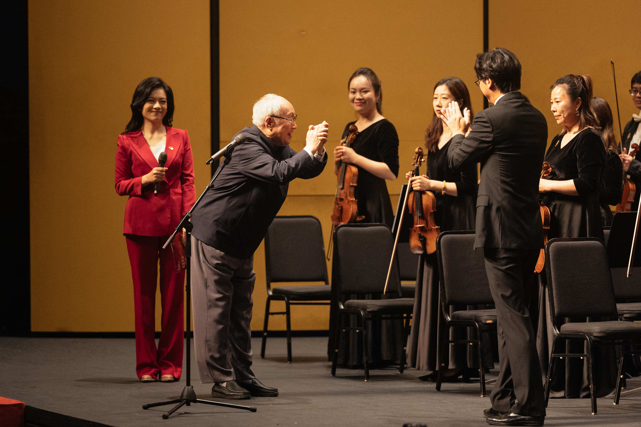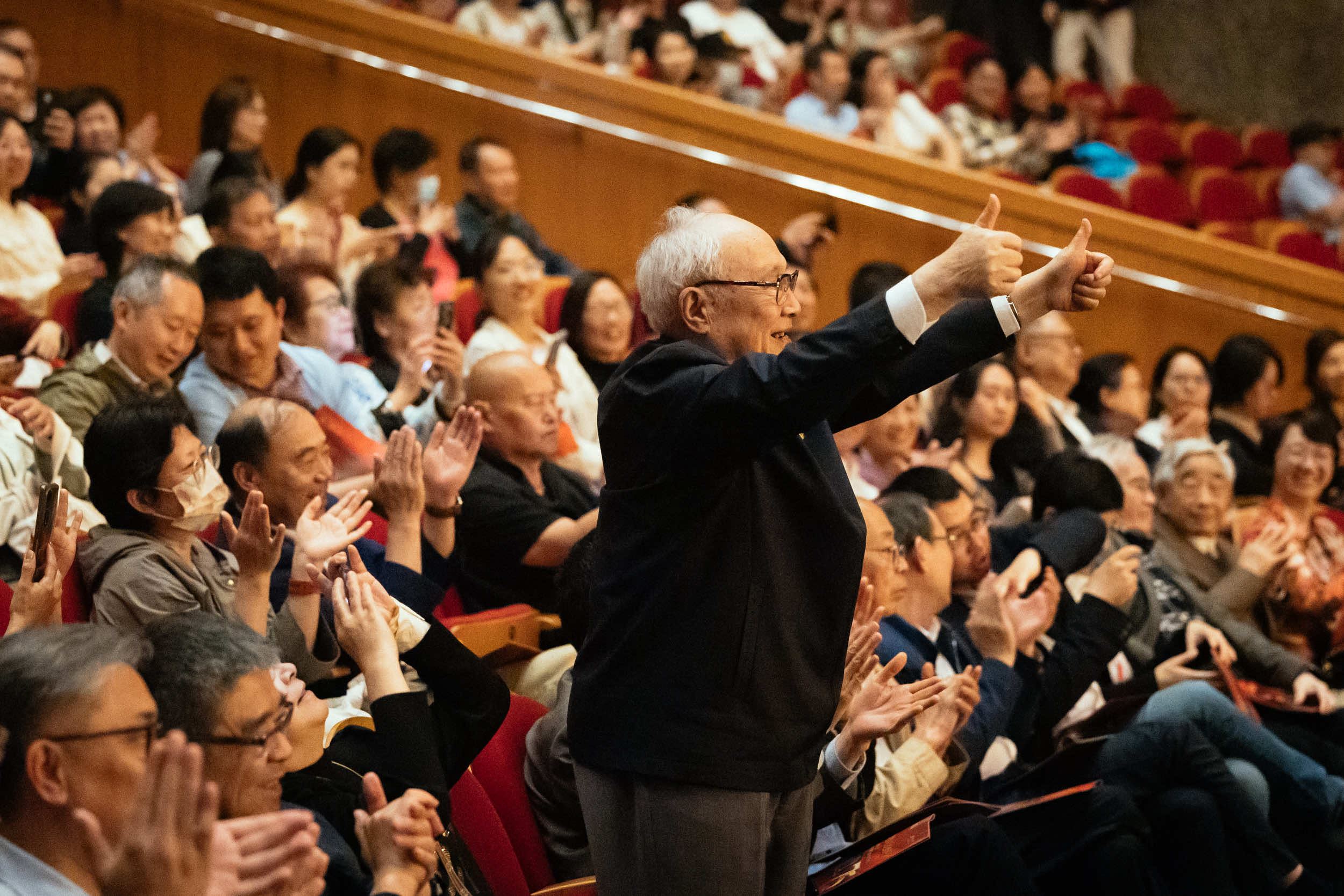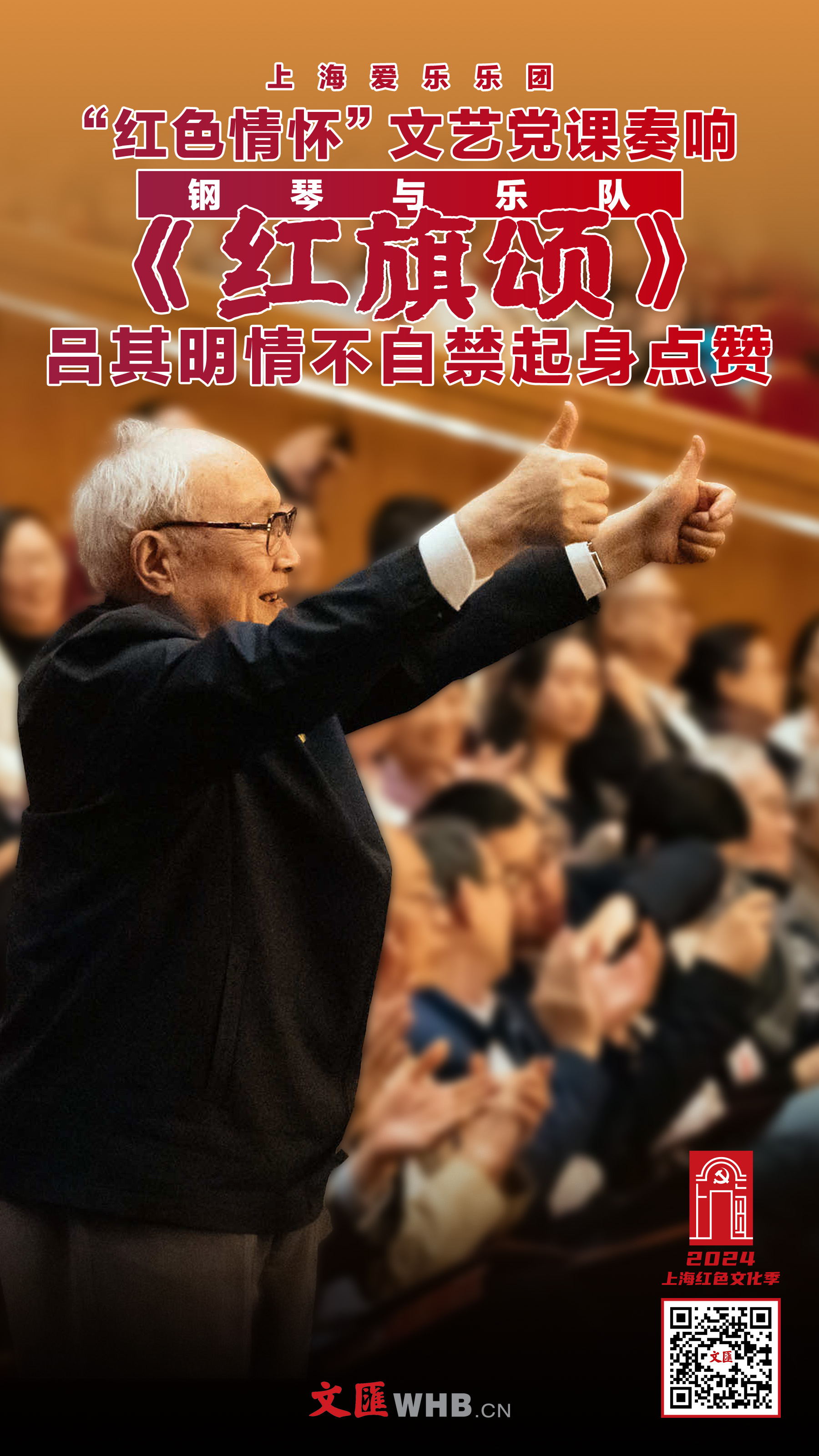 上海是中国共产党的诞生地、初心始发地,也是伟大建党精神孕育地。“红色情怀”既是上海爱乐乐团的音乐会品牌,更是乐团光荣初心的写照。5月27日上海爱乐乐团以全新编排的“红色情怀”文艺党课形式,为“光荣之城”2024上海红色文化季的红色舞台奏响激昂的旋律,在上海大剧院演出庆祝上海解放75周年主题音乐会。钢琴与乐队《红旗颂》曲毕后,94岁的吕老情不自禁站起身,向舞台上的演奏人员竖起了大拇指。