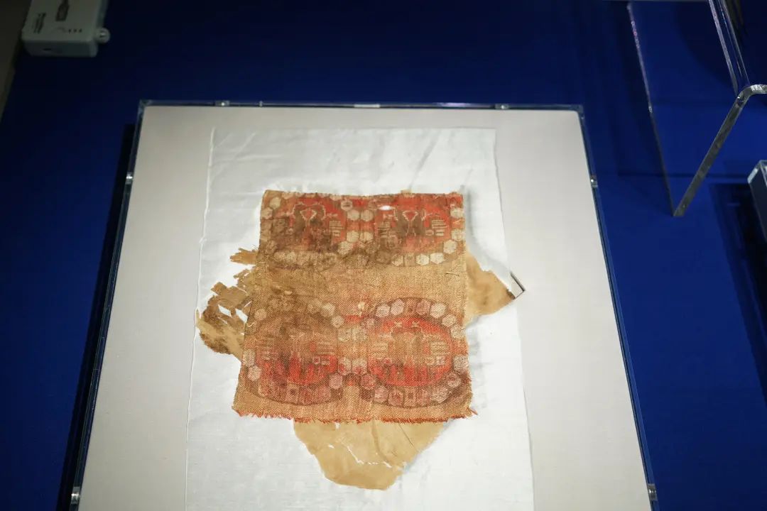新疆维吾尔自治区博物馆藏的展品联珠对鸟纹锦也格外引人注目。“在吐鲁番阿斯塔那的古墓群中,保存了不少公元七到十世纪的织锦有机物。这片织锦由红色、黄色、驼色和白色组成,联珠纹环绕对鸟图案是典型的萨珊艺术风格,即是当时中国人给伊朗人加工、按照萨珊审美来定制的中原出口货物,充分说明了从魏晋到唐朝时期古丝路上的繁荣贸易。”王樾解释道。