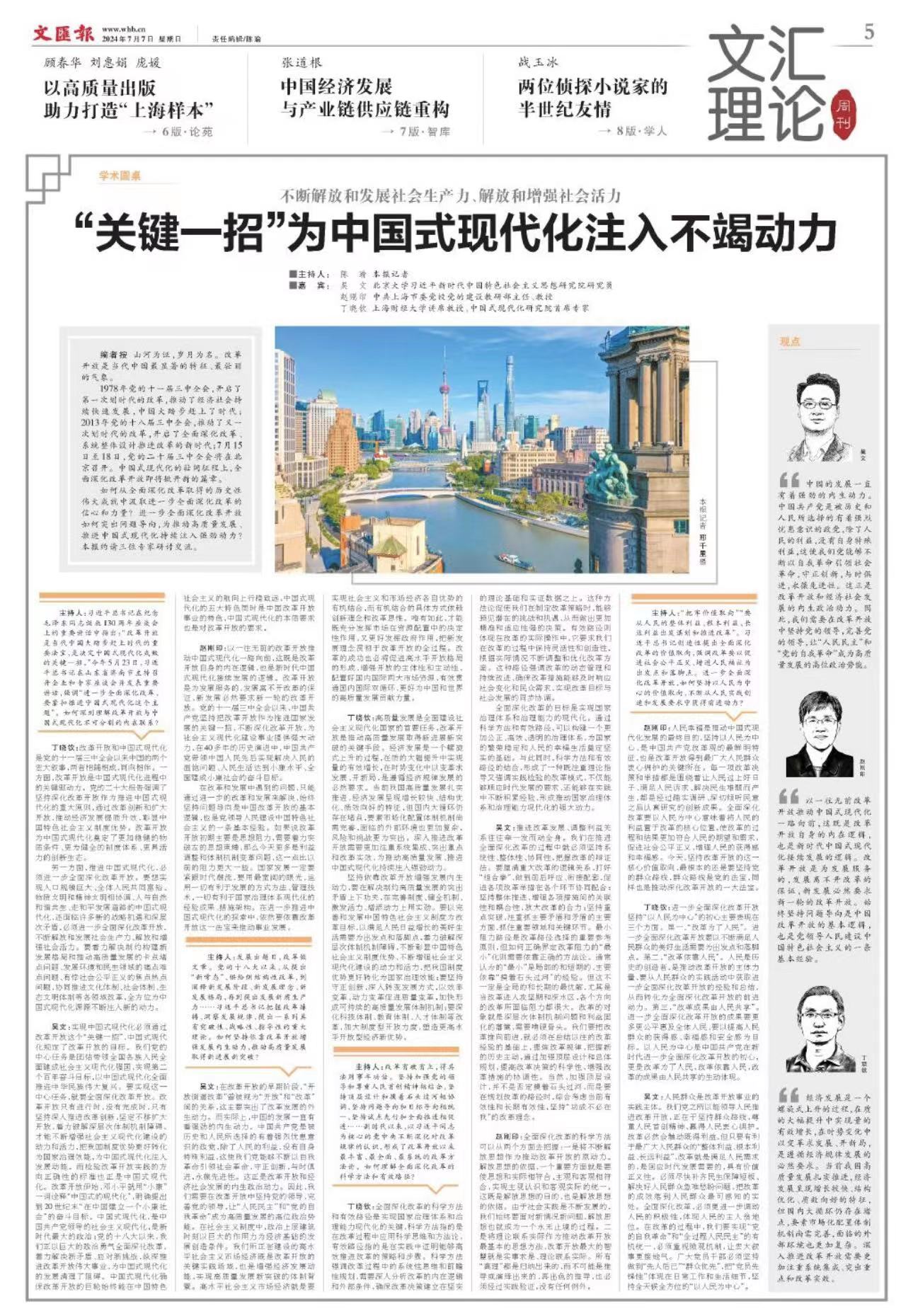 如何从全面深化改革取得的历史性伟大成就中汲取进一步全面深化改革的信心和力量?进一步全面深化改革开放如何突出问题导向,为推动高质量发展、推进中国式现代化持续注入强劲动力?本报约请三位专家研讨交流。