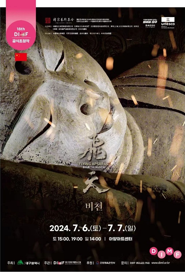 韩国大邱国际音乐剧节是亚洲最大的音乐剧节。本届音乐剧节有来自中国、韩国、美国、法国、荷兰、英国、日本的40部音乐剧作品入选。作为中国唯一受邀作品,音乐剧《飞天》7月6日至7日亮相大邱,全场座无虚席。