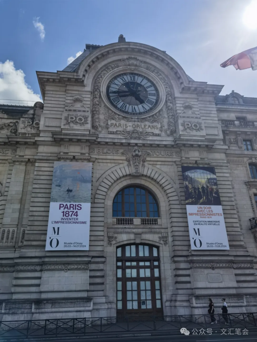 在夏天的烈日和巴黎特有的蓝天下,很远就可以看到塞纳河对岸的奥赛博物馆(Musée d’Orsay)两个高耸的塔形屋顶的大钟,而这个由1900年建成的火车站改建而成的美术馆有着漂亮的文艺复兴式建筑的赭黄色的石头立面,有着一种沉静的古典美,而两个塔楼间的七个巨大的拱形落地玻璃窗户,又透出一种轻盈的现代气息,似乎要让这石头的建筑里面看不见的空间变得透明起来。
