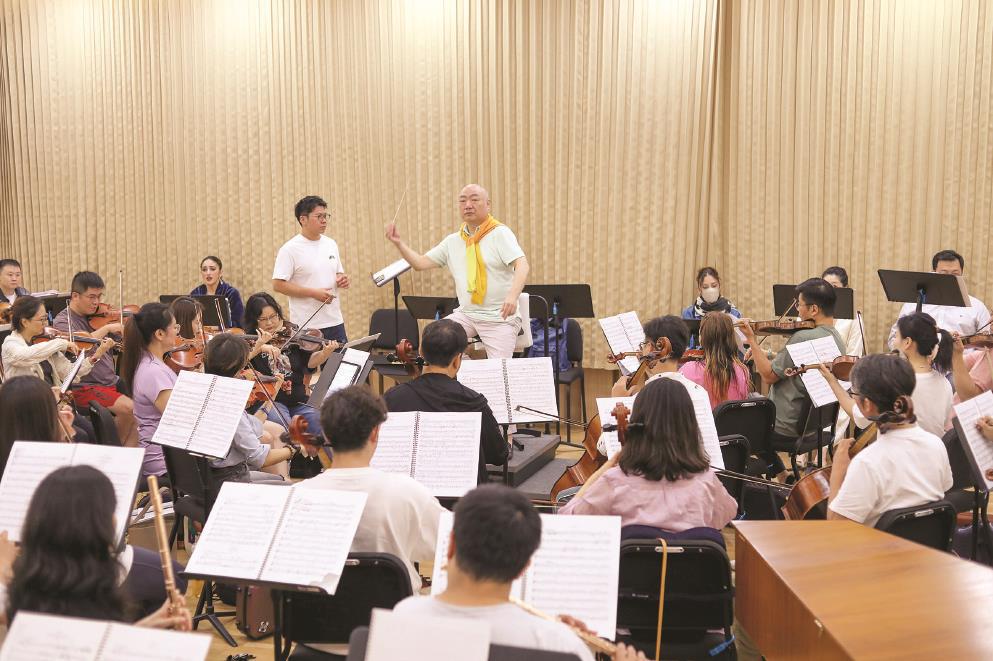 作曲家莫扎特的作品每年都以极高的演出频次在世界舞台占据一席之地,创作于1786年的四幕喜歌剧《费加罗的婚礼》是其众多歌剧作品中最为著名的一部。“莫扎特的歌剧十分强调音乐与戏剧的统一性,对歌剧演唱技艺也有大胆的探索与拓展。”为了引导大家在繁密的声部中配合默契,许忠特别注重引领歌唱演员和演奏员们的情绪,他手中的指挥棒轻盈而极具节奏感地飞舞着,让作曲家精心编织的音乐织体有了丰富而清晰的层次感。