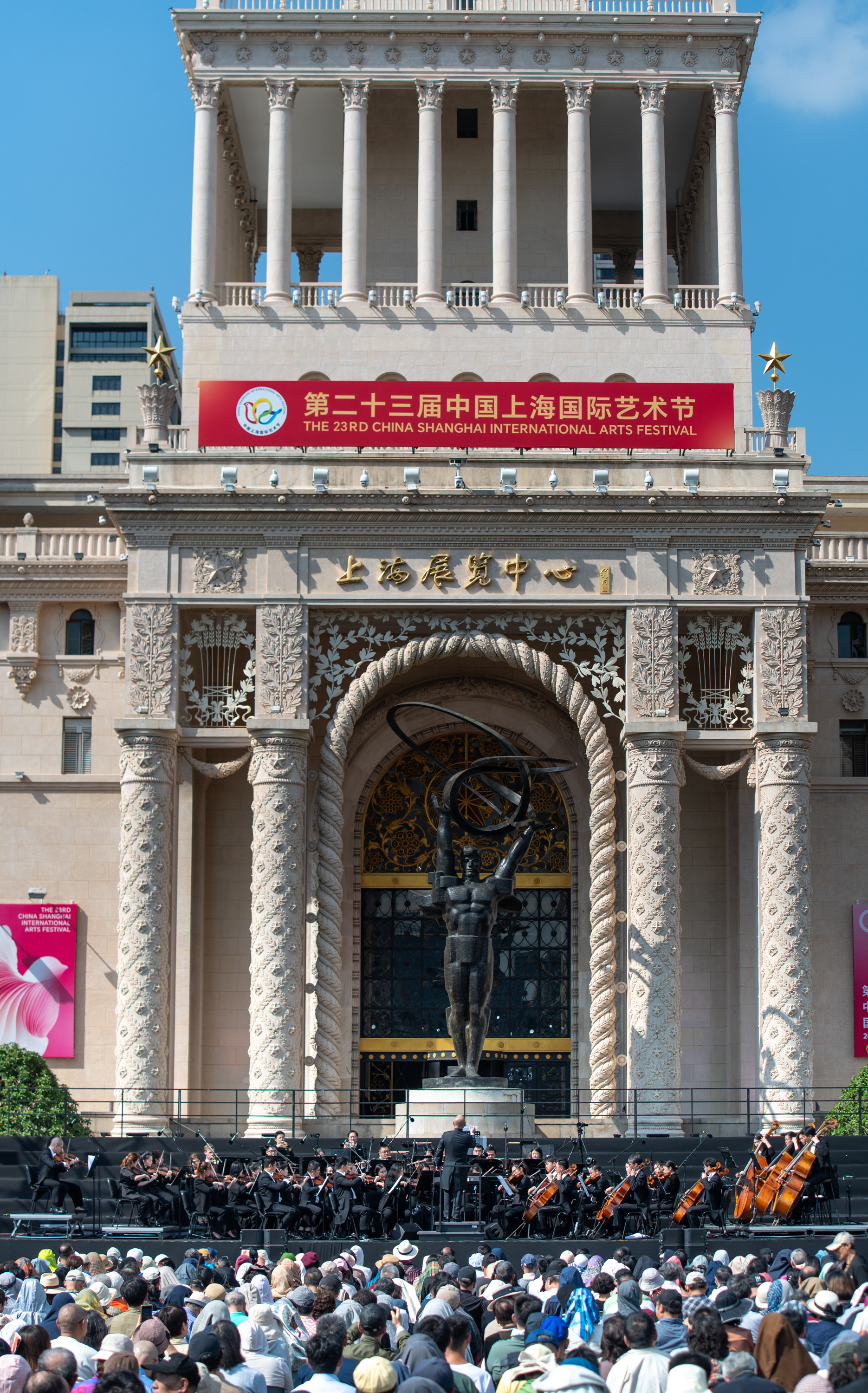 高强度、高品质、高能级,这场户外音乐会的举办,既是上海大型户外景观演出史上的又一创举,也是艺术节从自身最有优势的资源出发,践行“人民城市”理念、打造具有世界影响力的上海文化品牌的重要实践。自去年始,上海展览中心的户外交响音乐会便成为艺术节的一大品牌。今年,各方再度联手,持续擦亮这张上海城市文化品牌。在此次演出中,由著名指挥家艾森巴赫与许忠共同担任音乐总监,由国家大剧院管弦乐团、上海歌剧院交响乐团、苏州交响乐团、上海爱乐乐团等国内一流交响乐团的声部首席和优秀乐手组成的艺术节节日乐团再次亮相。