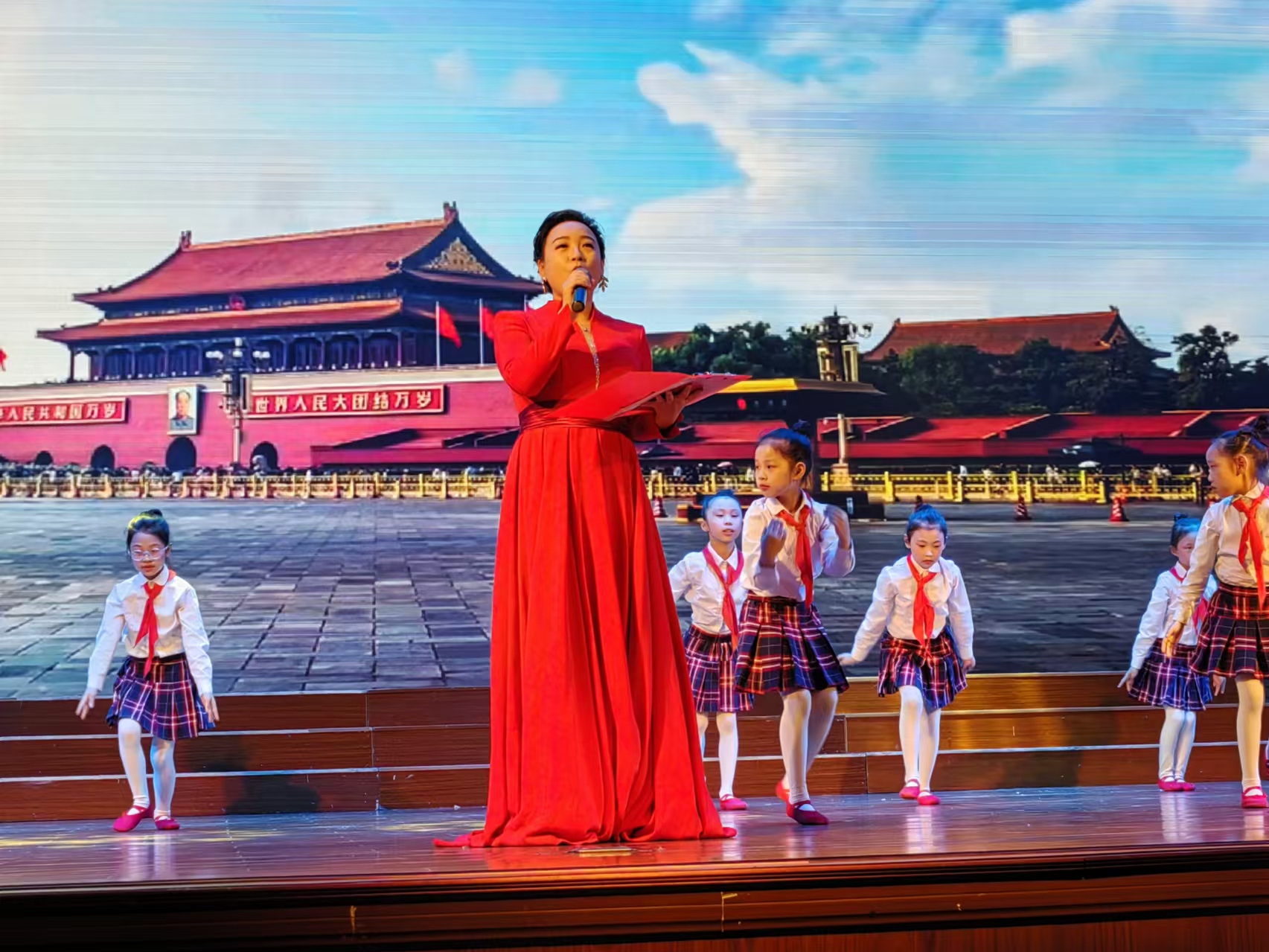 女高音歌唱家李敏演唱由著名作曲家、“七一”勋章获得者吕其明作曲,军旅词作家薛锡祥填词的《红旗颂》,伴舞则是“全国中小学舞蹈教育传统校”宝山区罗南中心校舞蹈队。