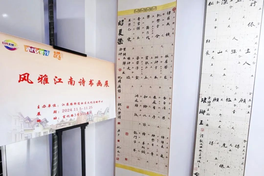 与此同时,由杨赛教授创作并策展的“风雅江南”诗书画展在江苏路街道社区文化活动中心同步开展,让观众能够近距离感受中华传统文化的博大精深。