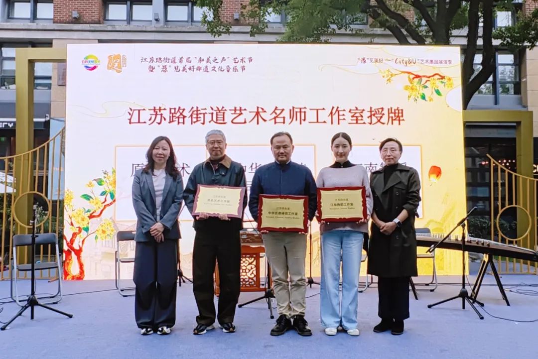 为创新实施文化惠民工程,活动为中华古谱诗词工作室、原色艺术工作室、江南舞蹈工作室揭牌。其中,中华古谱诗词工作室由中国诗书画研究会理事、上海音乐学院博士研究生导师杨赛教授领衔,致力于古谱诗词的研究、译介、传唱、创新与推广;江苏路街道原色艺术工作室为社区居民搭建了一个了解和欣赏艺术的平台;江南舞蹈工作室专注打造集专业学习、演出交流、教学实践为一体的成人舞蹈平台。