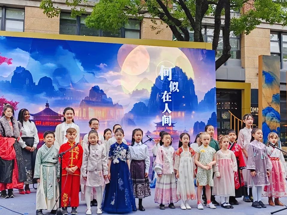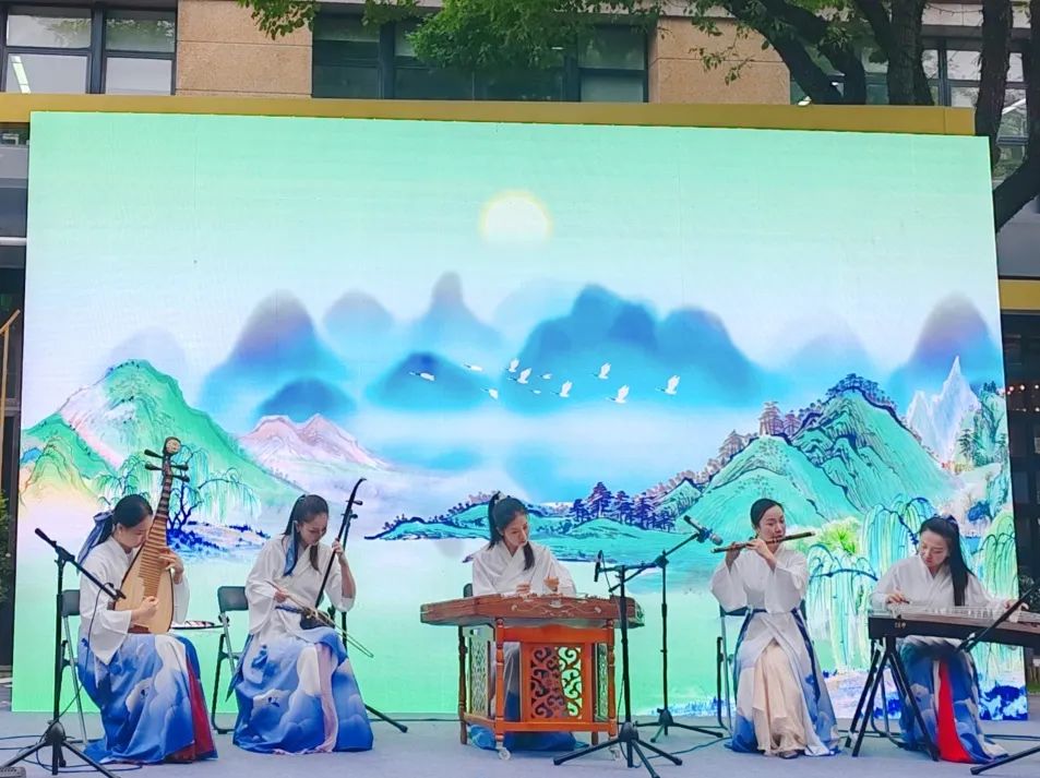 本次活动在中外儿童合唱的《水调歌头》歌曲中拉开帷幕,孩子们的歌声清脆、情感真挚,仿佛将观众带入了一个充满诗意的世界。随后,一连串富有江南文化特色的节目精彩上演:以古谱演绎的经典诗词歌曲《忆江南》铺陈开江南水乡的诗情画意,江南丝竹乐《欢乐歌》中的旋律如溪水般“流淌”在人们的心田,原创歌曲《游女曲》与《采莲曲》交织出一幅荷叶田田的江南画卷,舞蹈《人间烟火》将烟雨朦胧的江南画面跃然眼前。最后,来自区少年宫民乐团的“小艺术家”们带来柳琴合奏《云雀》,抒发了生命的蓬勃与希望。