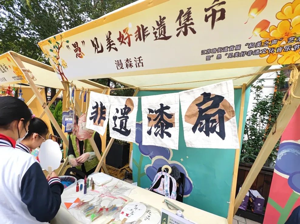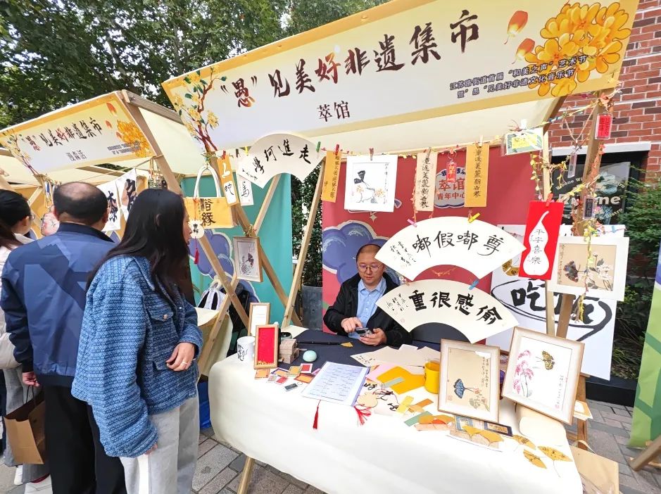 本次活动还通过非遗集市、书画展等形式,充分展示愚园艺术生活街区的人文底蕴和文化特色。现场设置的非遗集市展示了海派石雕、非遗漆扇、书画、刺绣等艺术作品,市民群众从参观者转变为参与者,在互动体验中加深对非遗文化的了解,展现出街区文、商、旅共生共荣的景象。
