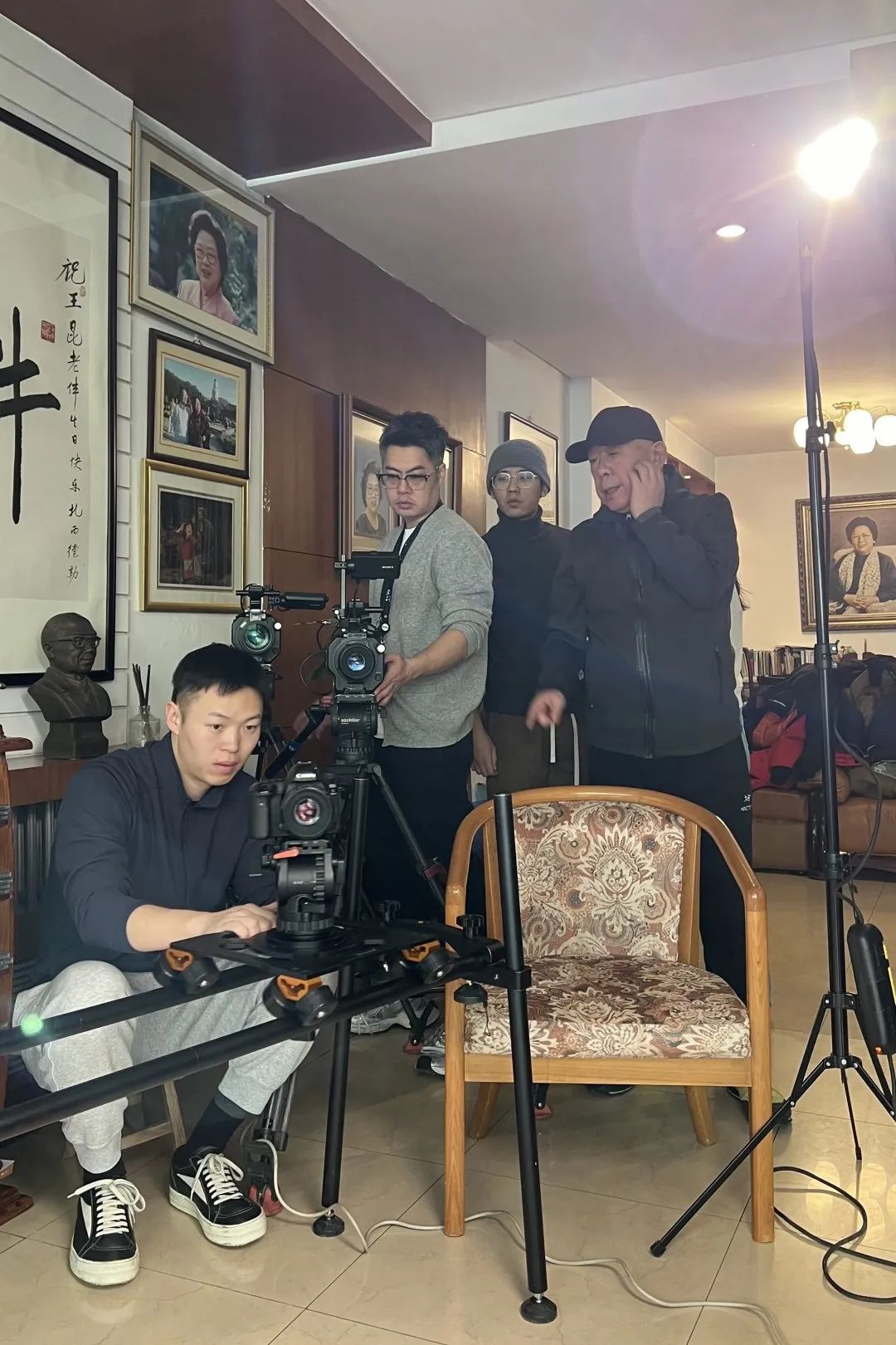 在长达一年的拍摄中,节目组跟随周七月辗转北京、河北、江苏、陕西多地拍摄,重访周巍峙、王昆人生中的重要地标,也和周七月成为了朋友。我们用纪实手法拍摄了大量他在故地寻迹的片段。两位艺术家的故事,以“我的父亲母亲”的口吻,娓娓道来。
