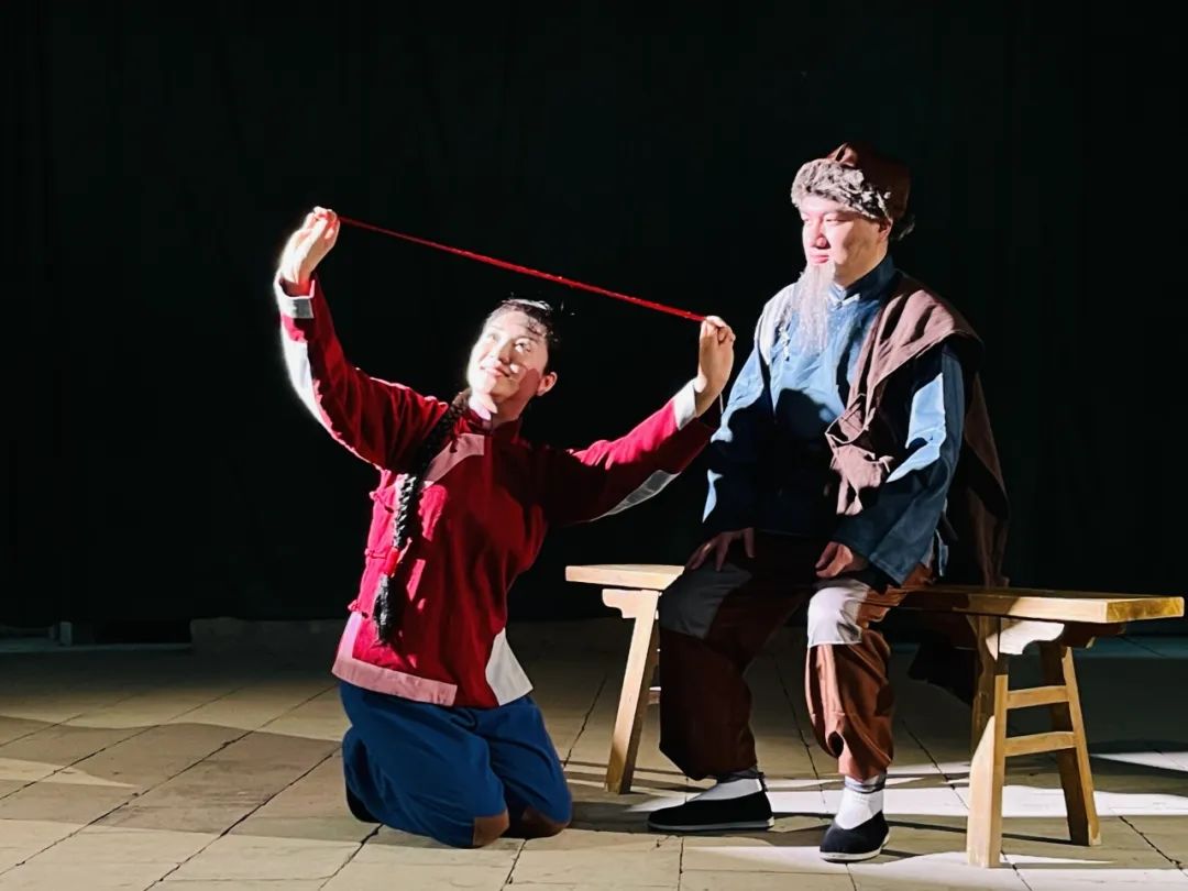 刚演出完的 “喜儿”,辫子还来不及拆,就和孟于一同唱起《北风吹》。“喜儿”之间的传帮带,从采访到现实,在这一刻实现了呼应。