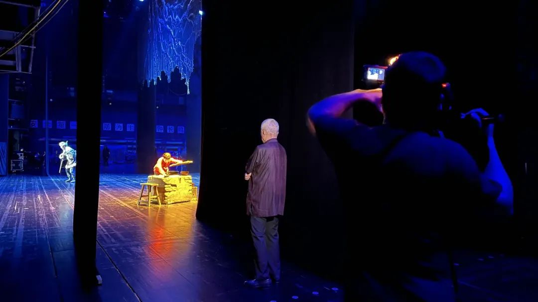 于是,我们专门设计了这样一个电影化的场景:《白毛女》演出时,周七月伫立在侧幕观看。当场灯暗下,歌声响起,摄影机追随着周七月的目光,在那个瞬间,光阴流转,经典作品的艺术魅力、母子之间的深厚情感,超越时空的壁垒,闪耀着光芒。