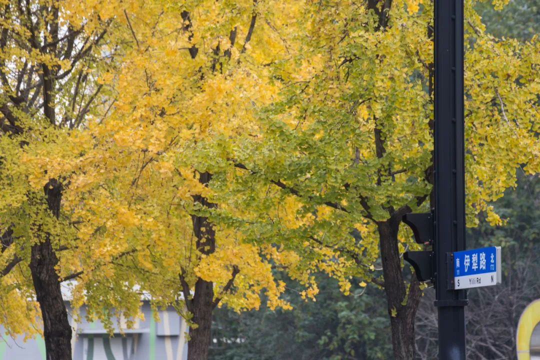 连接虹桥路和延安西路之间的伊犁路,正迎来银杏的“盛宴”。金黄的银杏叶挂满枝头,随风摇曳,为过往行人带来无尽的暖意。