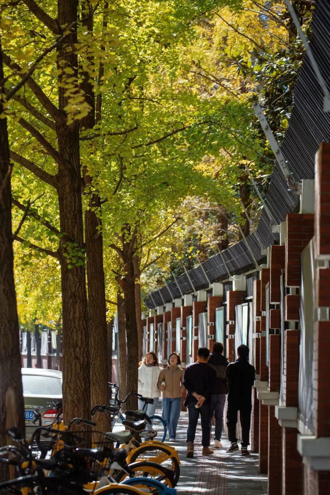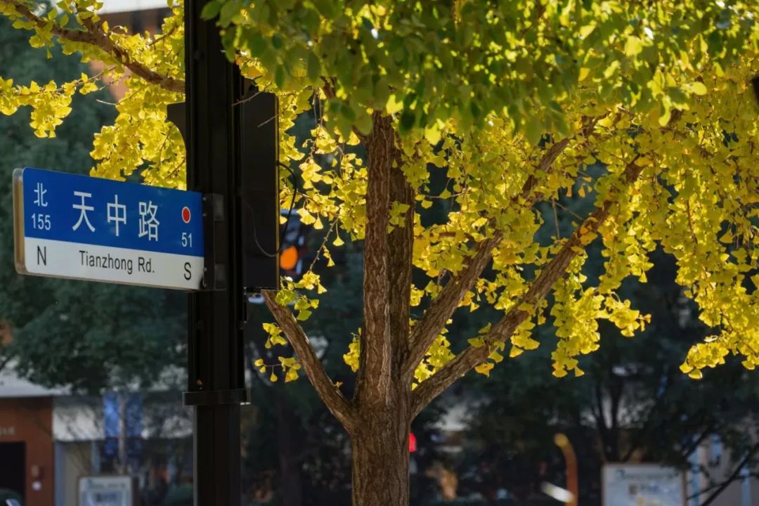 天中路的银杏树陪伴了很多长宁学子的成长,也刻在了不少长宁人的记忆里。在这里拍摄银杏,有校园的红墙,也有金黄的银杏叶,微风吹过,仿佛置身于童话般的唯美世界,氛围感极强。