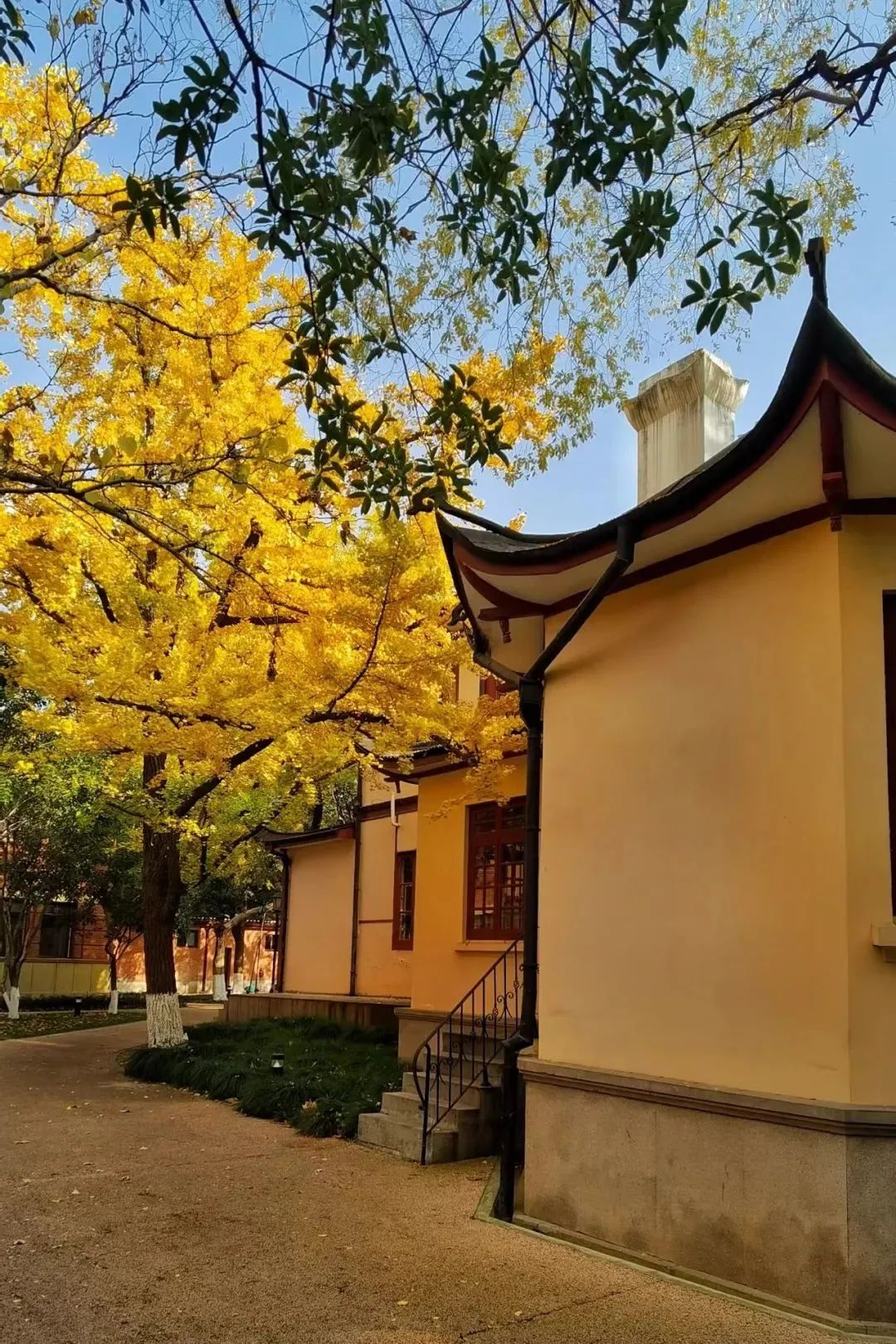 从步道进入华东政法大学长宁校区,散落在校园里的百年银杏树似乎也带上了书卷气,静静地、优雅地展现着季节交替的独特风景,让路过的人不由得想要驻足。