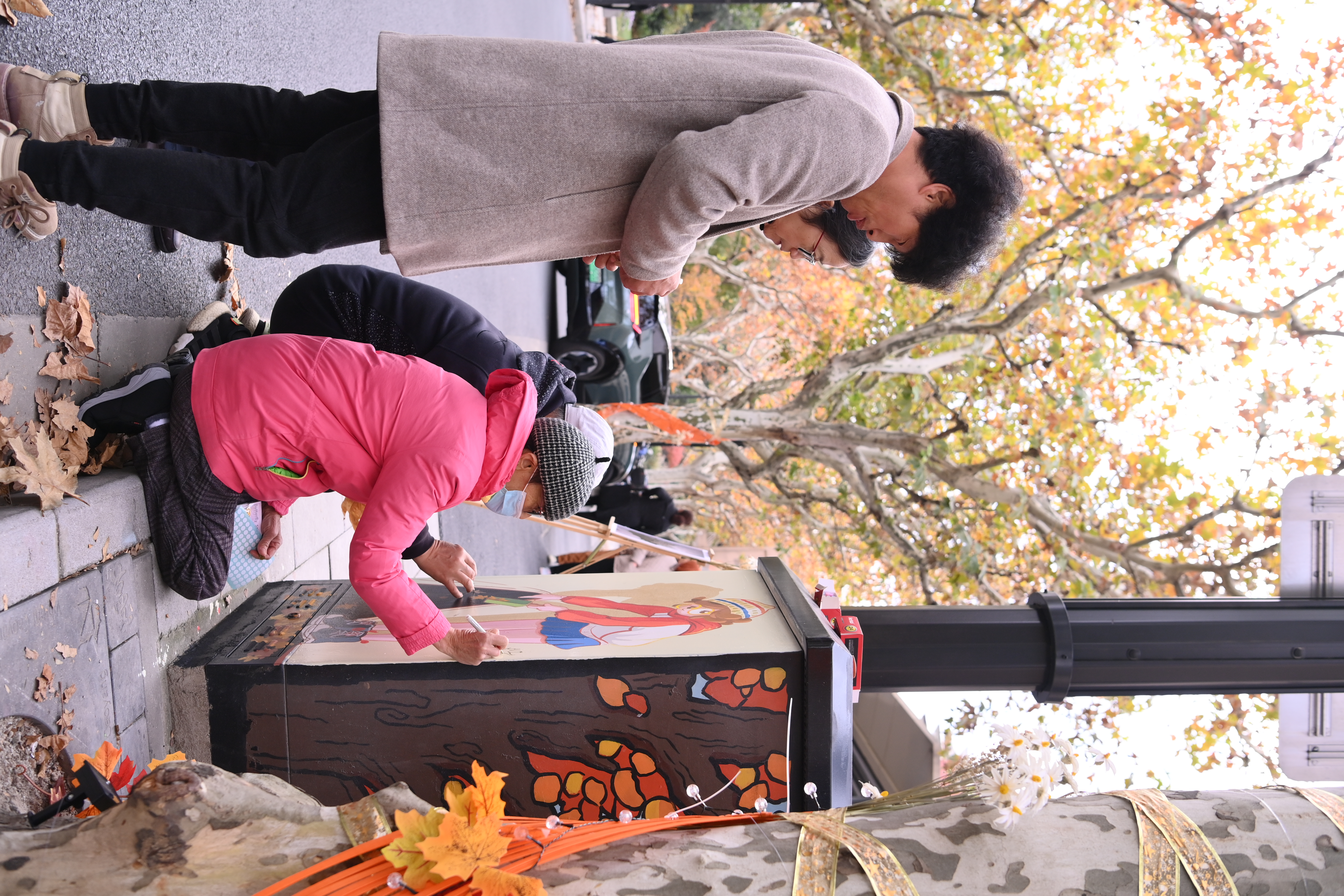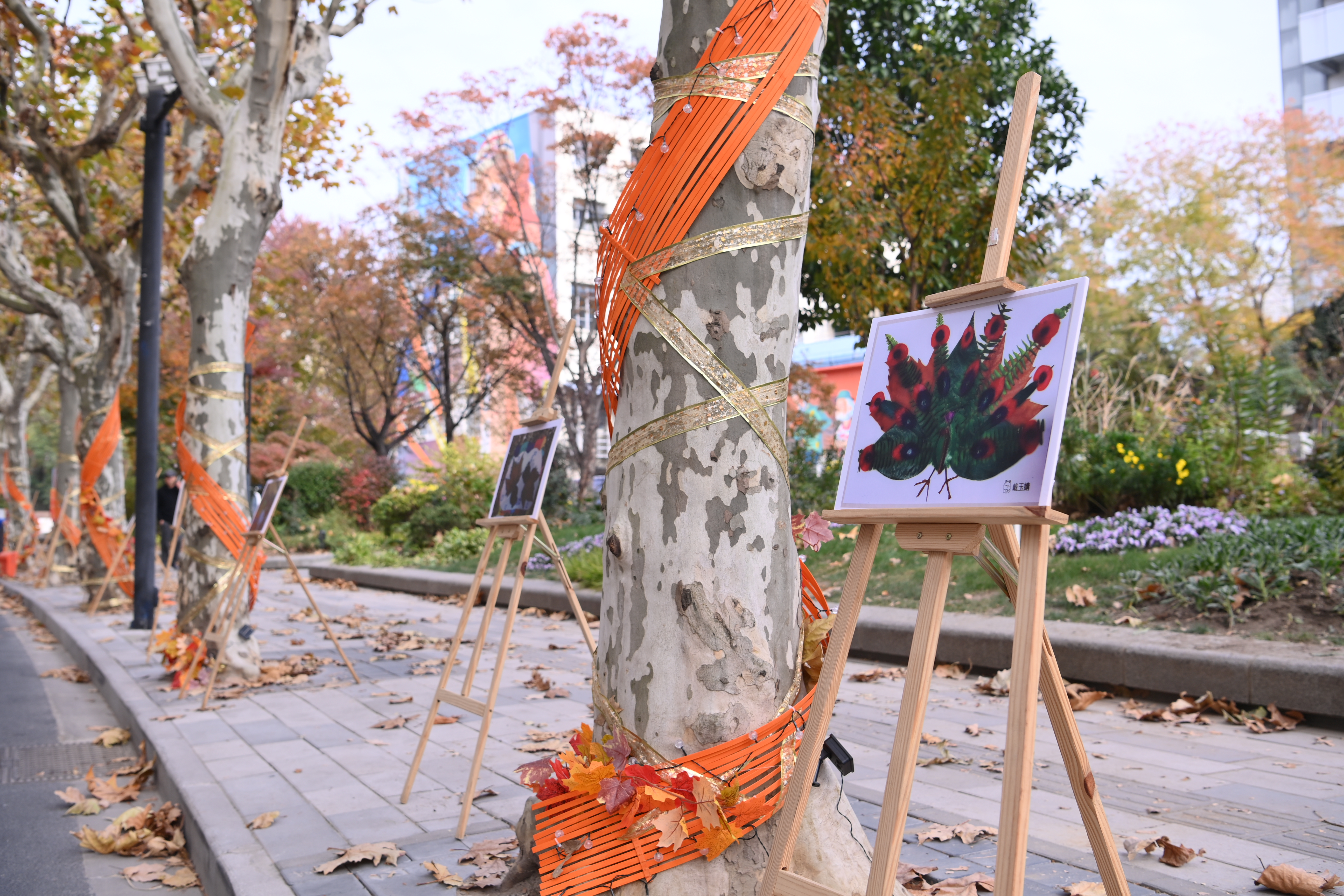 今年,街道对花溪路美丽街区再升级再打造,增加了景观小品、墙体彩绘、夜间照明、四季主题等装置和精心布置,别有一番景致。现场,还启动了“落叶装帧”艺术作品评选活动、花溪路“景观小品”焕新推介演绎、《我的世界-1米视角看曹杨》绘本“落叶装帧创意画”专刊征集、“我的新村我的家 · 我和‘落叶不扫’有个约会”摄影作品大赛等。这些活动不仅丰富了社区居民的文化生活,还进一步激发了他们的创造活力和参与热情。