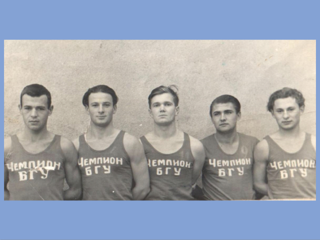 1954年,白俄罗斯国立大学,斯乔平(中)和篮球队的队员