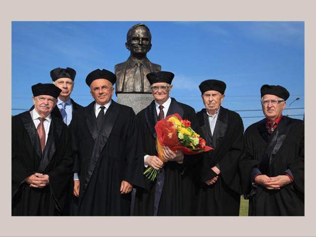 圣彼得堡国立大学名人堂,斯乔平(左四)与其铜像合影