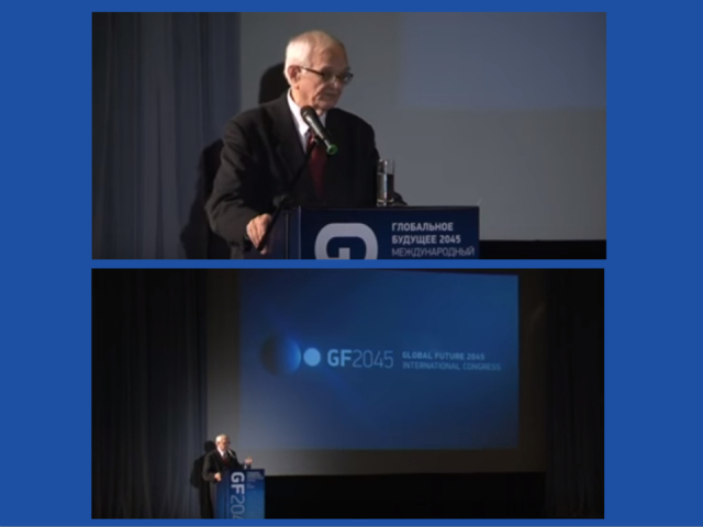 2012年,斯乔平出席“全球未来2045国际大会”(Global Future 2045 International Congress),围绕着“文明将会如何演进”论题做了主题报告