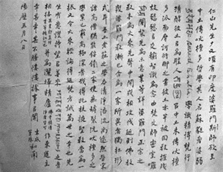 吾土老庄之学,去清净法流尚远,然晋宋诸高僧犹能熔铸二家使无罅裂,况吠檀多之学业已穷高极深者哉!得此扶掖,圣教当为之一振,又令大乘经论得反梵方,诚万世之幸也!先生有意护持,望以善来之音相接,并为洒扫精庐(佛寺稍清净者皆可)作东道主。幸甚幸甚,不胜慺慺据事以闻。末底、曼殊和南 阳历五月八日