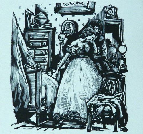 这帧插图,是法国画家努埃尔(Pierre No?l, 1903-1981)为这部小说1946年巴黎出版的一部两卷大开本所作的八十幅木刻画之一,限量发行,一共只印了七百部。努埃尔从小喜欢绘画,年甫弱冠,离家去巴黎美术学院习艺,后来一度投笔从戎,二战初期曾经参战,日后曾被册封为法国海军的专职画家。他是位多面手,素描、油画、木刻、封面设计、装饰艺术均有所涉猎,不过他主要以文学插图为业,一生曾为一百多部文学作品作画,其中包括巴尔扎克和福楼拜的小说。