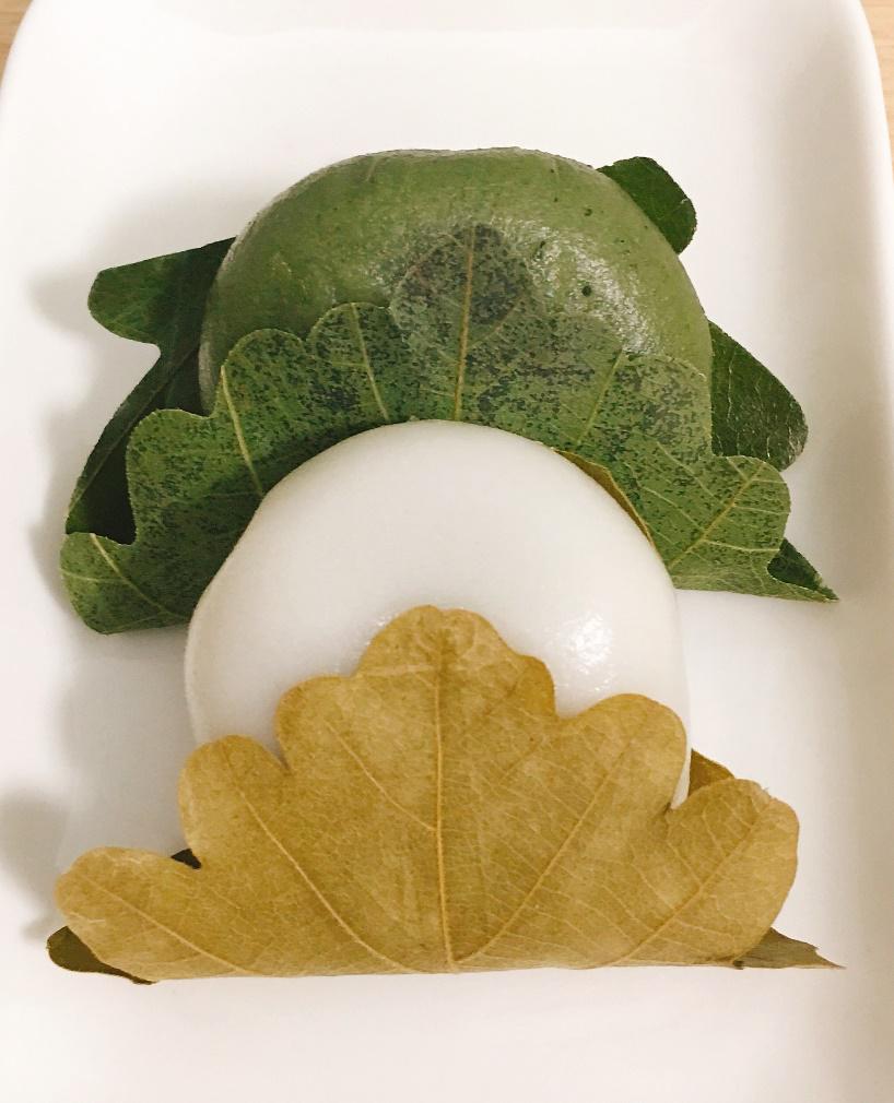 与中国传统节日使用阴历不同,日本自明治改历之后,端午节过的是阳历5月5日。4月中下旬的时候,超市里开始售卖一种用黄色或绿色的树叶包着的带馅糯米团子,称作柏饼,是日本过端午节的时令点心。我觉得很好吃,并且非常管饱,有一阵经常买来当作早餐,常见的有漉馅、粒馅,以及白味噌馅三种口味。前两者都是甜的豆沙馅,区别只在于豆沙的质感不同:漉馅指漉去赤豆皮的细沙馅,粒馅顾名思义,指赤豆并不煮烂成沙,仍保留颗粒分明的口感。白味噌馅则是白芸豆泥里掺入了白味噌,甜中略带着一点咸味。白味噌以西京(即京都)出产者知名,日本超市里售卖的味噌,常以“西京白味噌”作为卖点,因此,白味噌馅的柏饼也被视作西京风味的时令点心。我自己比较喜欢白味噌馅的,尝起来的感觉,比豆沙馅纯粹的甜味口感层次更丰富一些。