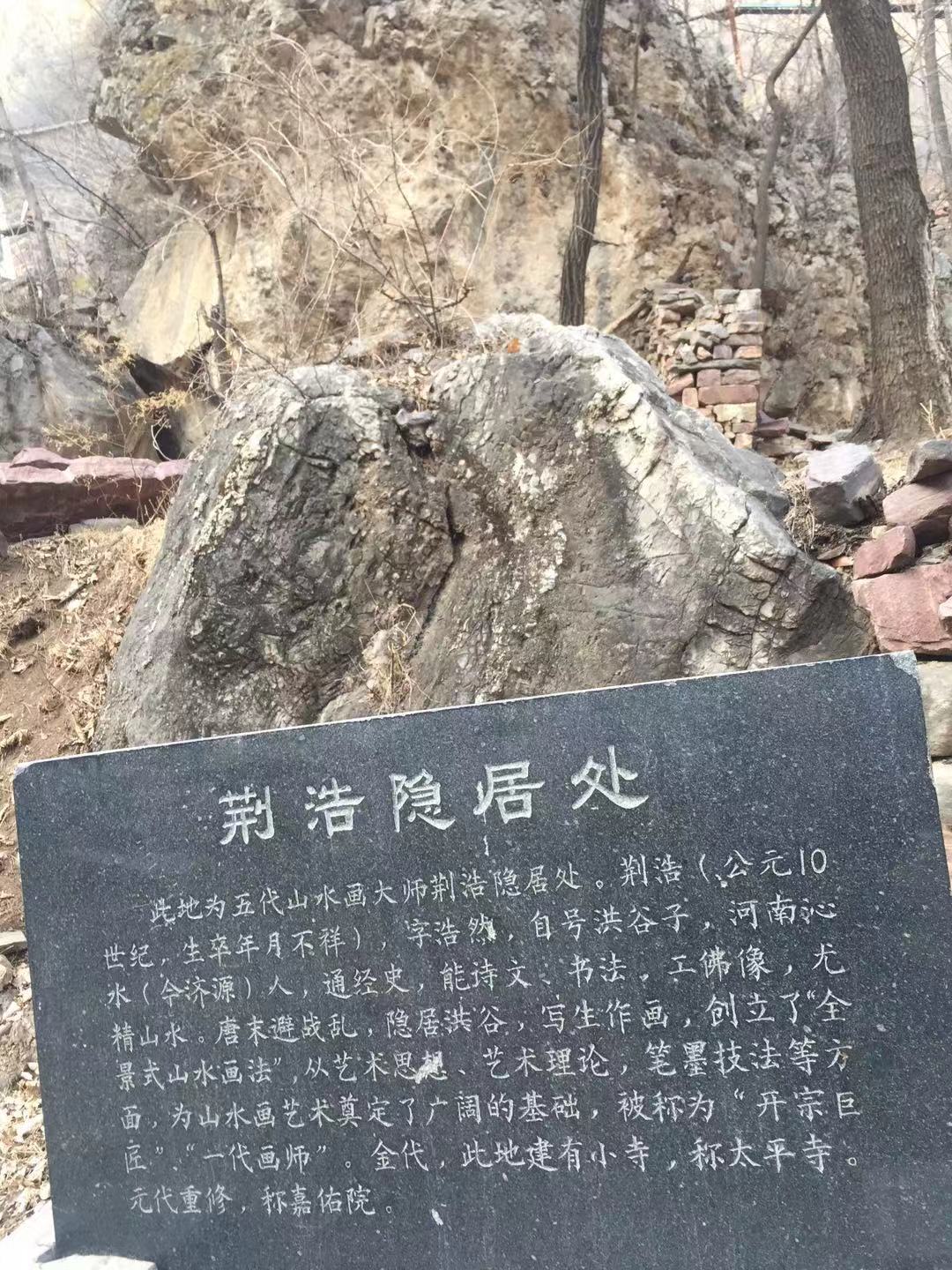 立春还未开春,灯节才罢,我们一行人过河而北,走京港澳高速北行,复进山上山,入大山深处,——踏残雪,于太行洪谷山里参拜五代大画家荆浩。荆浩是济源人,旧属河内。而太行山西起济源,蔓延过河内,在新乡、卫辉掉头向北,至林州出南太行入冀。这一段数百里路,巍巍南太行的走向,我习惯说它大致是个芭蕉扇或牛轭形状。