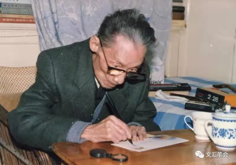 临别,我取出一枚“夏衍文学创作生涯六十年展览”的纪念封和一幅巴老的肖像画,请夏公签名题词。他拿着高倍放大镜对着纪念封上的签名读着:“巴金、冰心、沙汀、萧乾、刘白羽、曹禺、于伶、黄源……”没读完,他就说,都是老朋友,你能签到不容易啊。随后,他拿起笔在自己像边签了名。