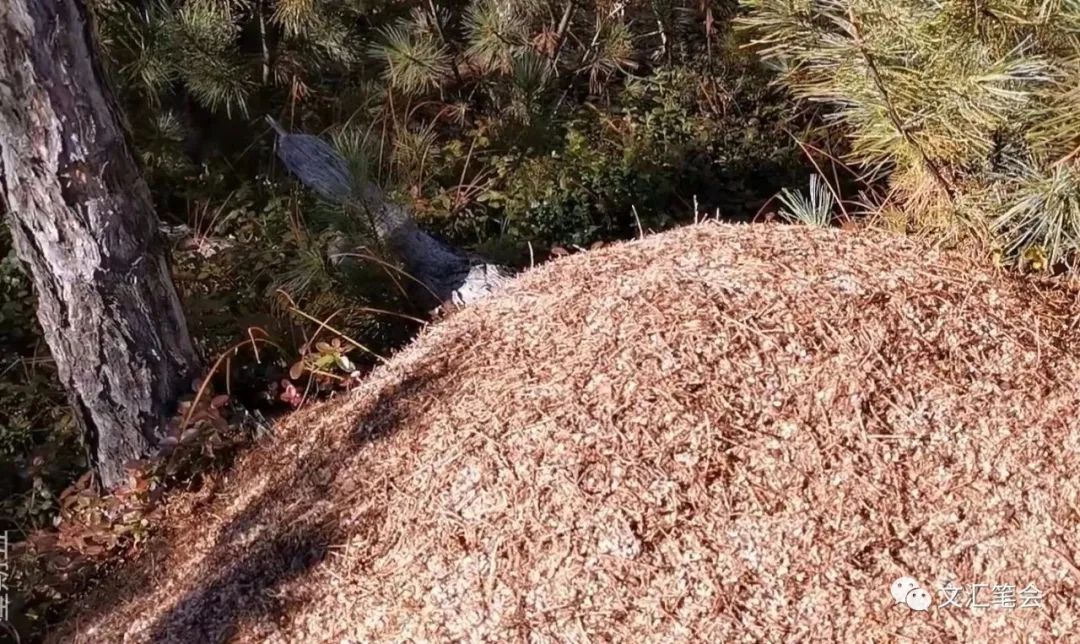 大兴安岭原始森林有红、黑两种蚂蚁,我们遇到的是红蚂蚁,学名没错的话应该是褐红林蚁。梅工让我抓起砂石堆上的砂石颗粒放在手上细看,砂石颗粒中混杂着数只红蚂蚁,它们显然有点惊恐,在我的掌中无方向地乱转着。哎呀!我明白了,这原来是一座座覆盖着砂石粒的蚂蚁巢穴。