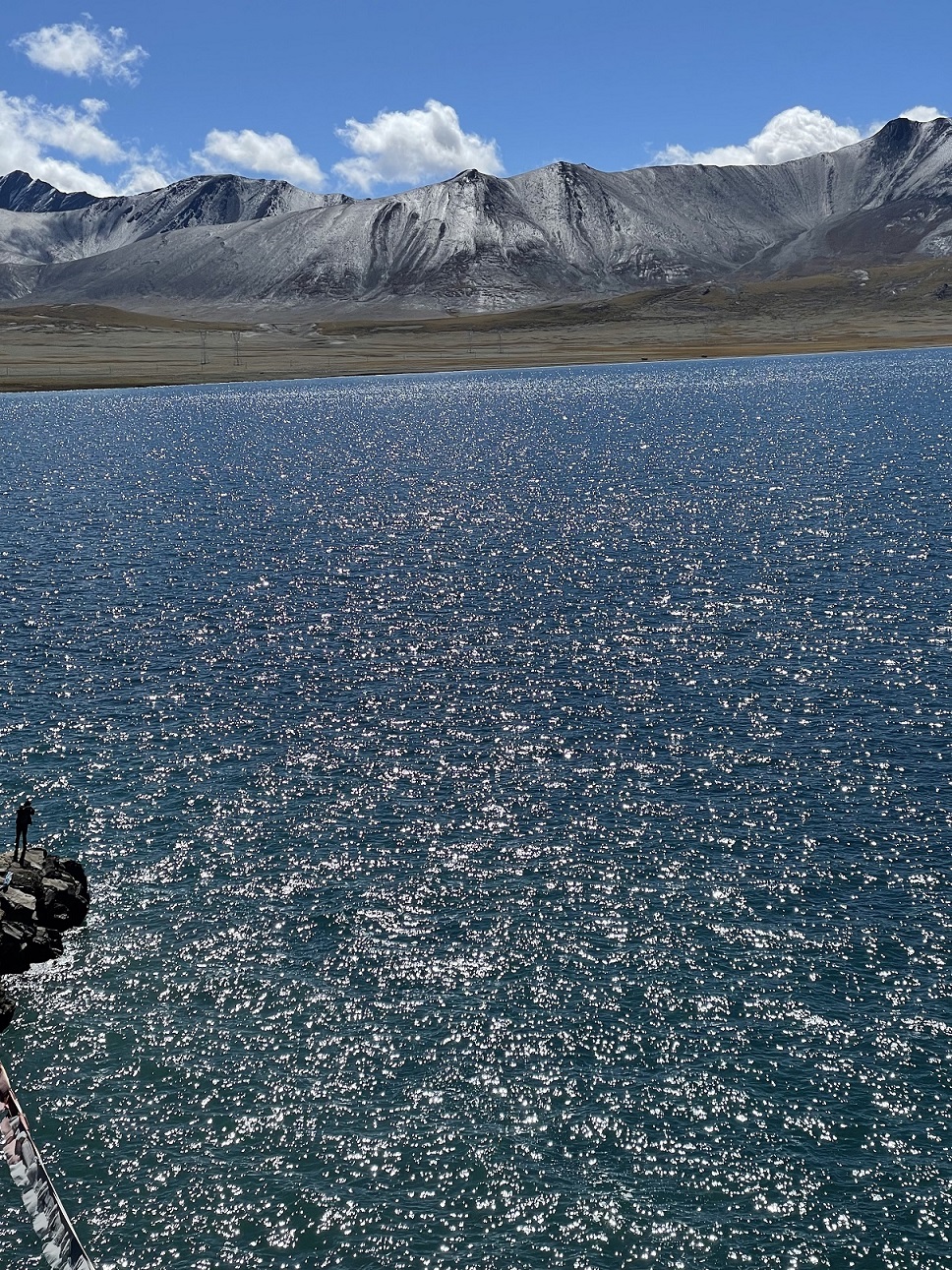 夜间下起了小雨。第二天,车子一直行驶到我们此行经过的最高处——海拔5363米的蒙达拉山口后,雾方散开,推村的推寺就忽现在我们眼前的普莫雍错之上。