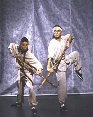 The dance and the railroad的剧情是讲十九世纪后半期,一位从事中国舞台传统戏曲的演员(尊龙演,下图右)飘洋渡海到美国寻“梦”,结果在西部卖身——当苦力修筑铁路,孤苦伶仃中在夜深人静时以唱戏练功排忧解愁作为精神支柱。这一举动影响了他的工作伙伴(马泰演,下图左),要求跟随习艺,两人相扶相持,更加懂得了苦难中必须牢牢地把握住精神财富。
