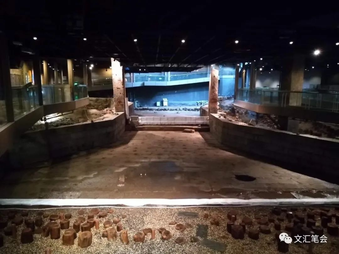 为了还原遗物得以幸存数百年的地下生态环境,博物馆在核心区域设计了湿气喷淋装置,通过电脑程序与管道喷嘴的定时定向配合,精准控制对古老构件的均匀喷洒和必要笼罩,任凭水雾滋润能工巧匠制作的花岗岩立柱,青石板地坪,以及密密麻麻的木桩龙骨……