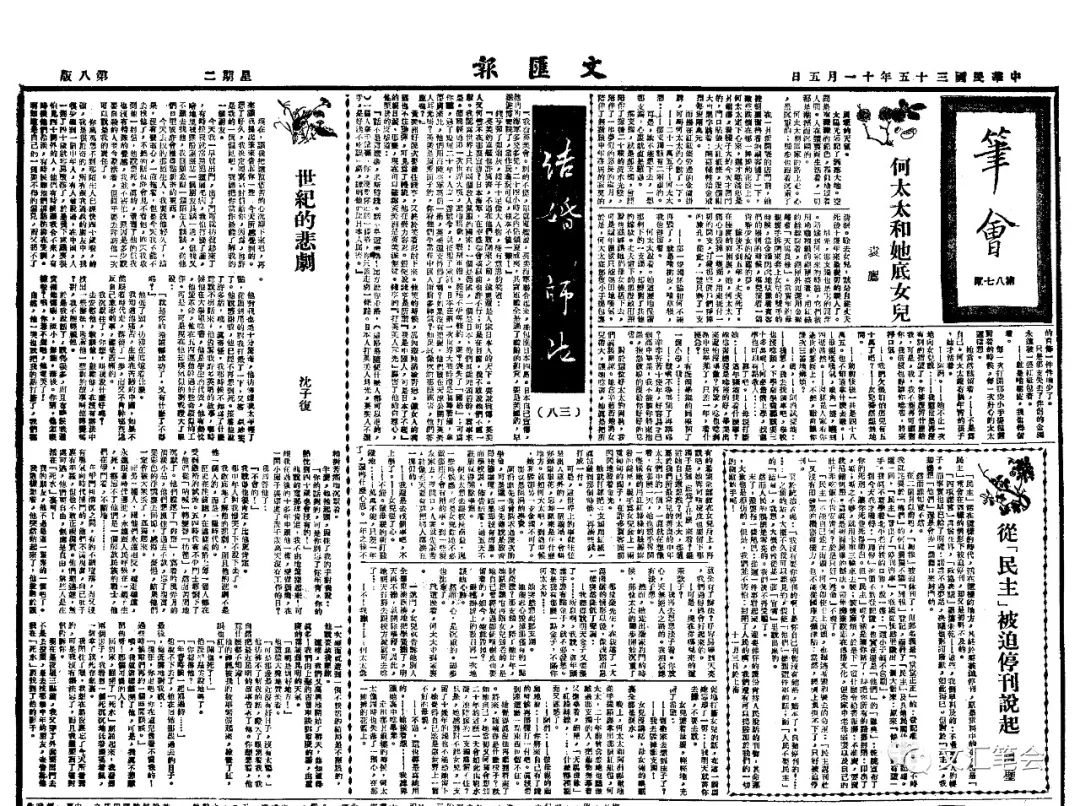 早在1946年11月5日,袁鹰先生就在《文汇报·笔会》发表了散文诗《何太太和她底女儿》。他给本报写得最多的,是关于文坛的人与事。如今,他也成为传说中的老爷爷了……