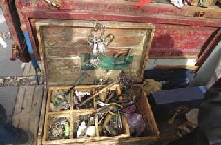 老唐,高个背微驼,五十来岁,苏北口音,常年充当“工作台”的膝盖处皱皱巴巴,在院子里摆摊二三十年,为居民修修补补。