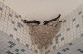 父亲在清理檐下的一个燕子窠。我看见的时候,小小的泥窠已经被整个端了下来。父亲正举着一根长棍,把粘在壁上的燕泥刮蹭干净。他的脚不时踩在泥窝下方那一滩怎么也清除不净的燕子屎的痕迹上。