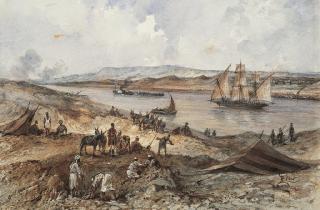 在初升朝阳万丈光芒的映照下,是伫立断头台上从容赴死的郭文。前景中,爱戴郭文的士兵在台下纷纷举手,祈求宽恕。